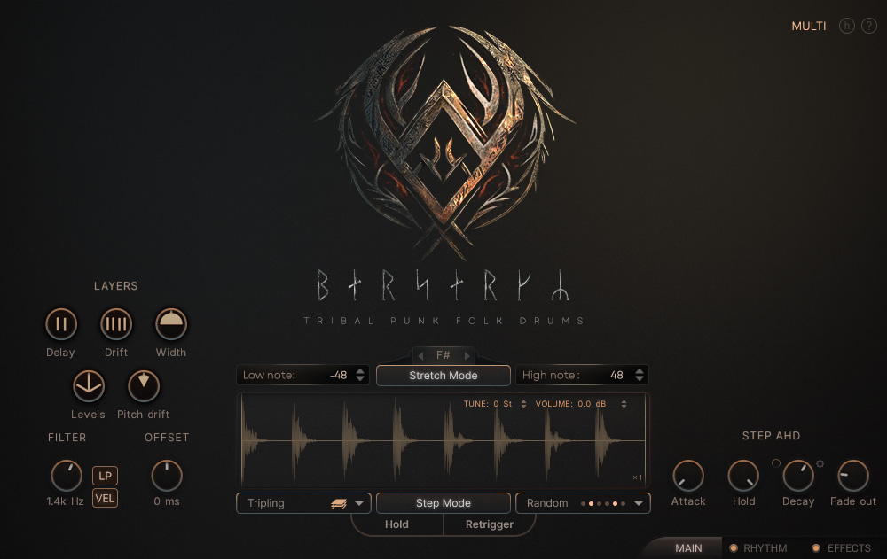 Featuring our cutting-edge sequencing and randomizing rhythms algorithm, Berserkr empowers you to invoke the spirits of the ancients, allowing you to craft unique and evolving drum rhythms effortlessly with the click of a button, and infuse your music with the essence of time-honored tales and uncover a myriad of creative paths awaiting your exploration.